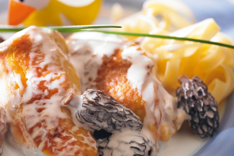 Éblouissez vos convives avec cette délicieuse recette de poularde aromatisée au vin jaune et accompagné de morilles.